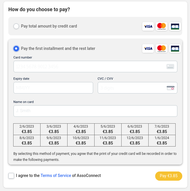 Or you can use Assoconnect.com, the membership is €46,20 due to the payment fees, we do not control them.